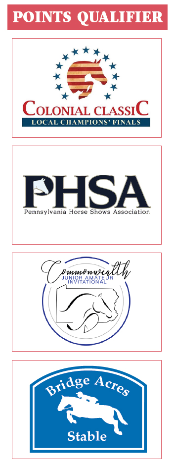 Open to ponies or horses in their first or second year of showing. Trotting corners will not be penalized. Fences at 2′.